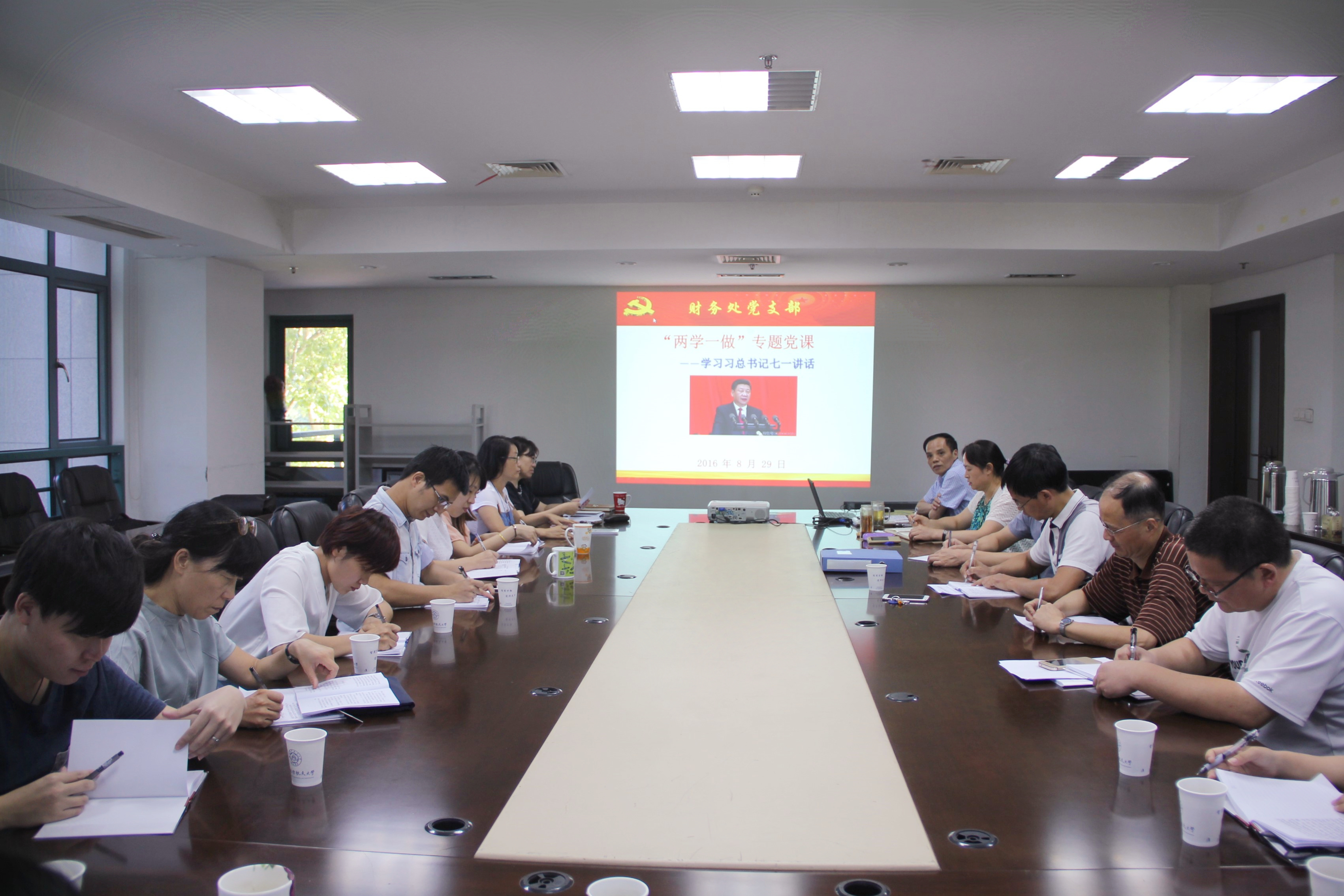 为深入开展“两学一做”学习教育工作,8月29日下午,财务处党支部在综合楼319会议室开展“两学一做”专题学习会,支部书记雷江发同志以学习贯彻习近平总书记“七一”重要讲话精神为专题,为全体党员讲授专题党课。会议由雷江发同志主持。