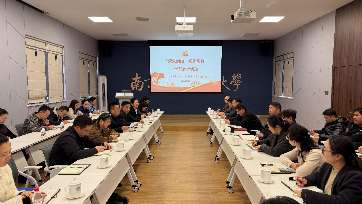 为深入学习贯彻党的二十届四中全会精神,持续深入推进“清廉南航”建设,2025年12月9日下午,资实处党支部与保卫处/保卫部党支部在明故宫校区MA26校友之家会议室联合开展“清风润岗·修身笃行”主题党日活动。活动由资实处党支部书记刘兼唐主持,两支部党员代表共计40余人参加。