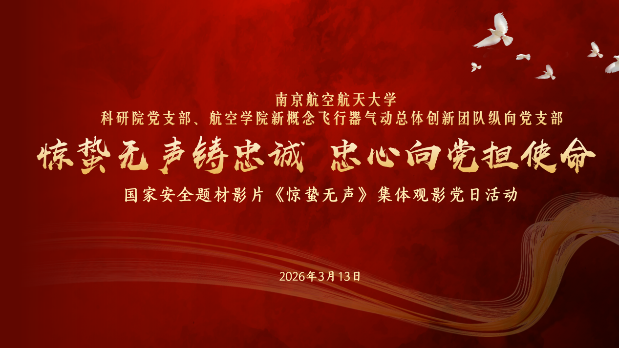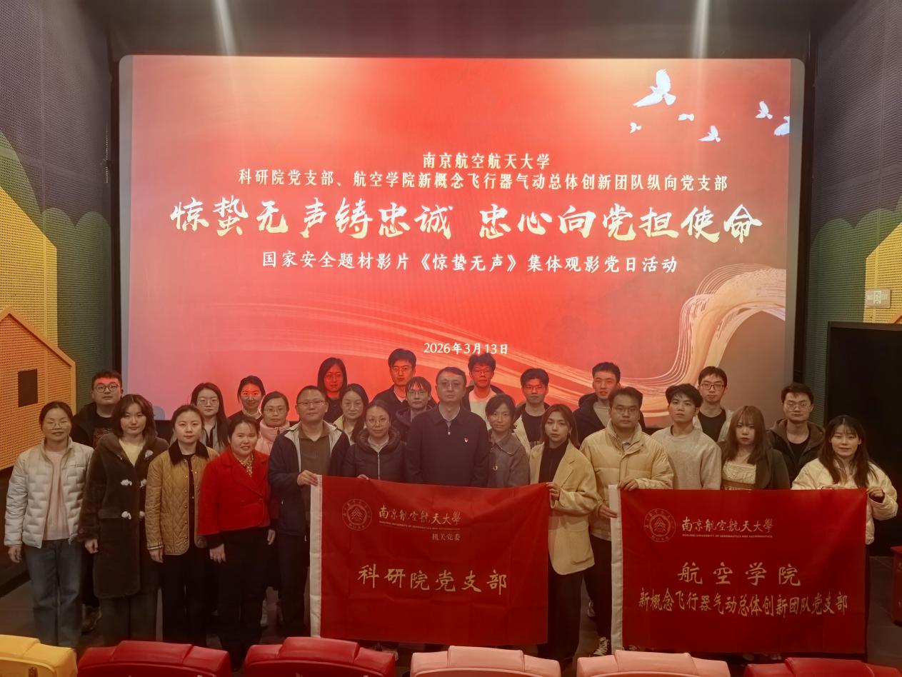 为深入学习贯彻总体国家安全观,强化师生党员国家安全意识与保密责任担当,3月13日下午,科研院党支部联合航空学院新概念飞行器气动总体创新团队纵向党支部开展 “惊蛰无声铸忠诚 忠心向党担使命”主题党日活动,集中观看国家安全题材影片《惊蛰无声》,以沉浸式“光影党课”凝聚忠诚力量、筑牢安全防线。